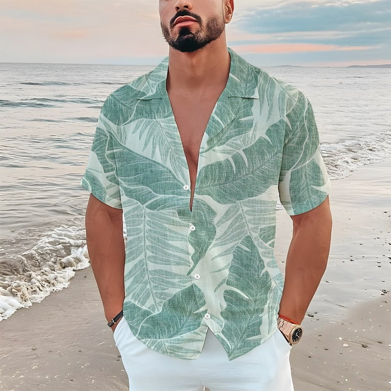 The Gray Green Leaves Button-Up Shirt is a sophisticated and versatile garment that combines modern style with natural elements. Its subtle gray color serves as a neutral canvas for the intricate green leaf pattern, adding a touch of botanical charm. Typically crafted from lightweight and breathable fabric, this shirt offers comfort and ease of movement. With its button-up design, it provides versatility for both casual and formal occasions, making it a versatile addition to any wardrobe. Perfect for adding a hint of nature-inspired flair to your ensemble, this shirt effortlessly blends style and sophistication.