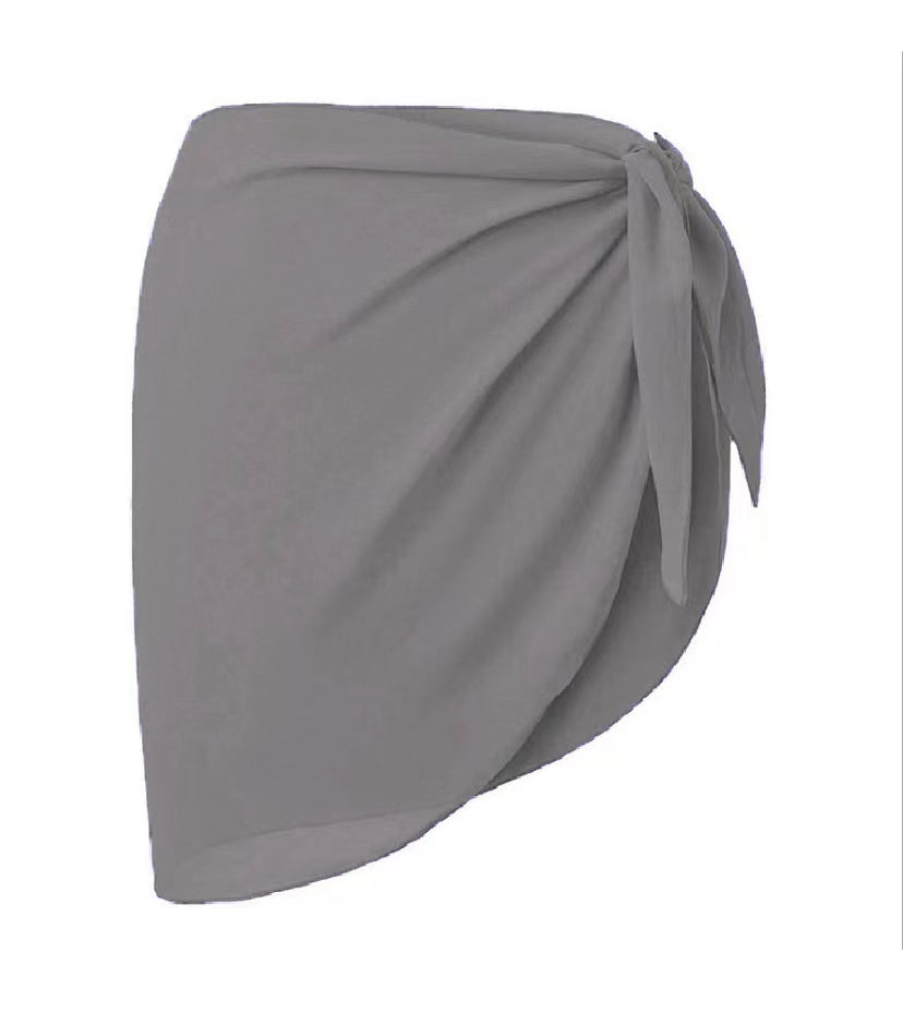 Short grey coverup wrap skirt. These skirt wraps are one sized.