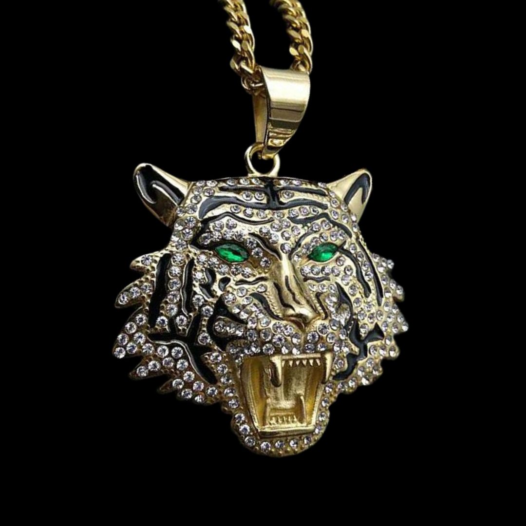Gold and Black Tiger w/ Green Eyes Large Pendant JW003BIG-3