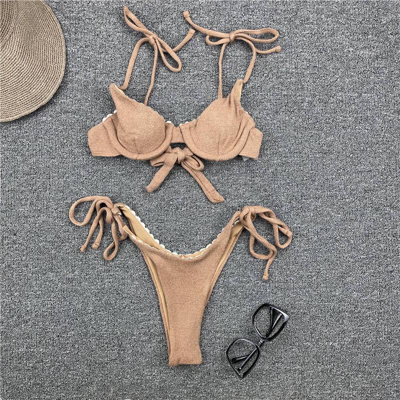 Elevate your beach look with this charming Nude Bikini, a stylish two-piece ensemble with a touch of flair. Crafted in a soothing nude hue, this bikini exudes summertime charm. The bottoms feature strings at the sides, adding a playful detail to the classic design. With its adjustable fit and comfortable style, it's perfect for lounging by the pool or catching waves at the beach. Dive into relaxation and style with this delightful nude bikini.