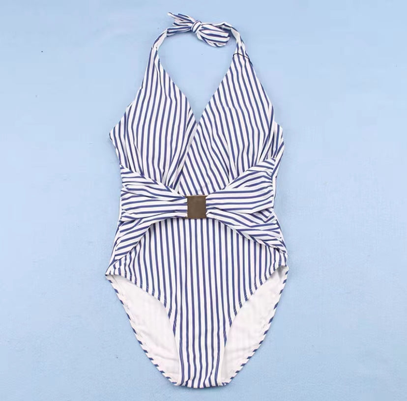 A blue stripes plus one-piece swimsuit offers classic style with a contemporary twist. The timeless appeal of blue stripes creates a nautical-inspired look that's both chic and versatile. Designed with plus-size figures in mind, this swimsuit provides ample coverage and support while flattering curves. The one-piece silhouette offers a sleek and streamlined appearance, perfect for lounging poolside or taking a dip in the ocean. With its combination of style and functionality, this swimsuit is a go-to choice for any beach or pool outing.