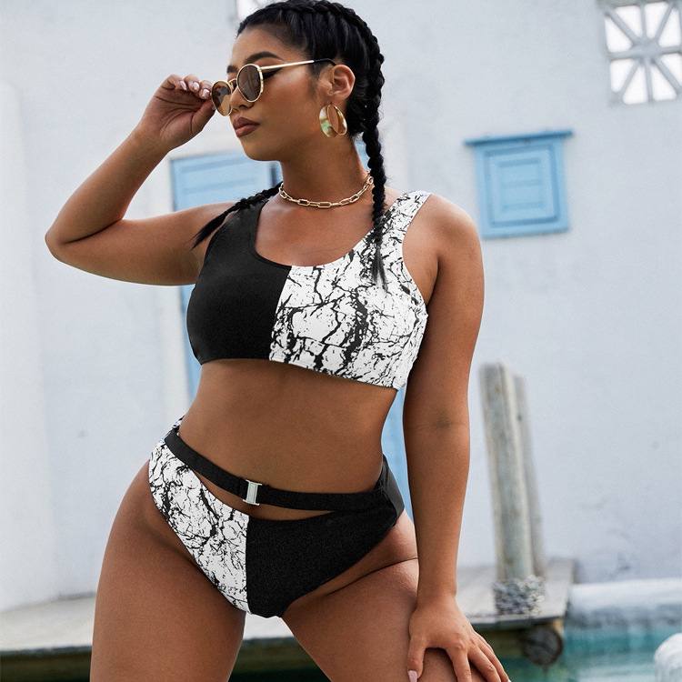 The Black and White Plus Size Bikini offers a timeless and flattering swimwear option for those with fuller figures. Featuring a classic color combination of black and white, this bikini exudes sophistication and style. The top typically provides ample support with adjustable straps and a secure fit, while the bottom offers comfortable coverage with a flattering cut. Perfect for lounging by the pool or soaking up the sun on the beach, this bikini combines fashion and functionality to provide confidence and comfort for all-day wear.