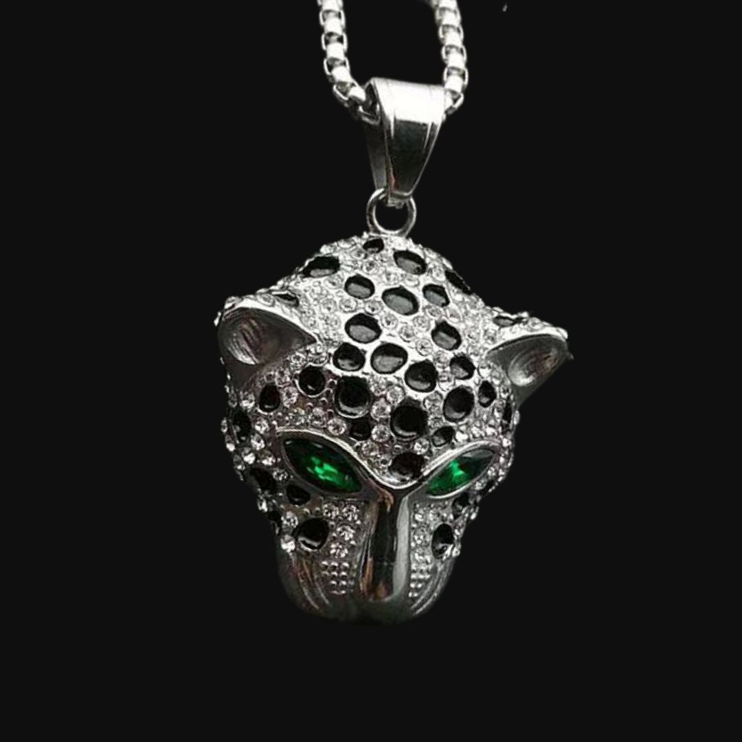 The Silver Panther Head Pendant with Green Eyes is a striking accessory that exudes strength and elegance. Crafted from polished silver, it features a detailed panther head design, accentuated by captivating green eyes that add a fierce touch. This unique pendant is perfect for those who appreciate wildlife-inspired jewelry, making a bold statement while showcasing sophistication and individuality.