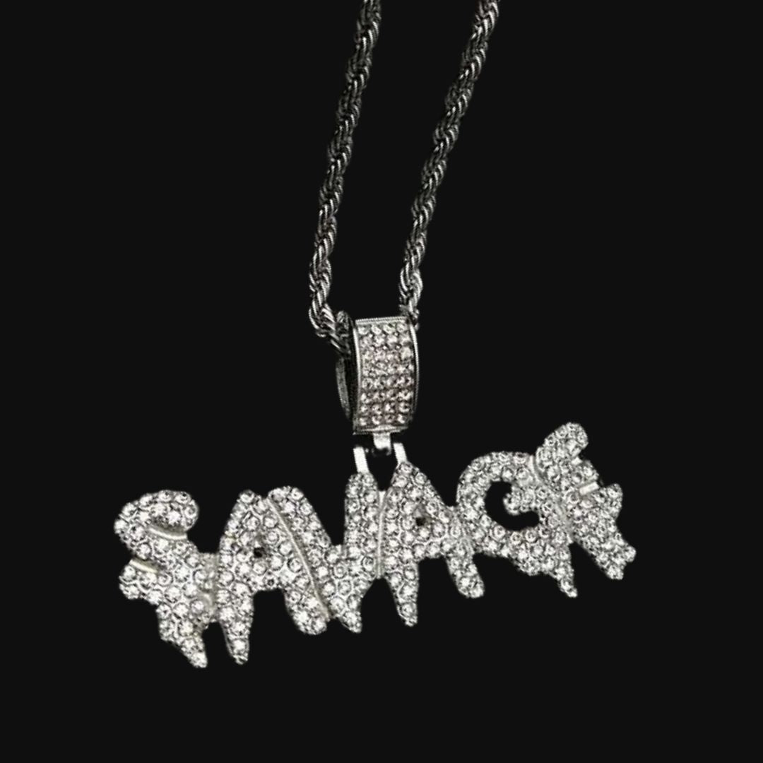 The Silver Savage Word Pendant is a bold and edgy accessory that embodies strength and individuality. Crafted from polished silver, it features the word "Savage" in a striking font, making a powerful statement about confidence and fearlessness. This unique pendant adds a touch of attitude to any outfit, perfect for those who want to express their fierce spirit and make a memorable impression.