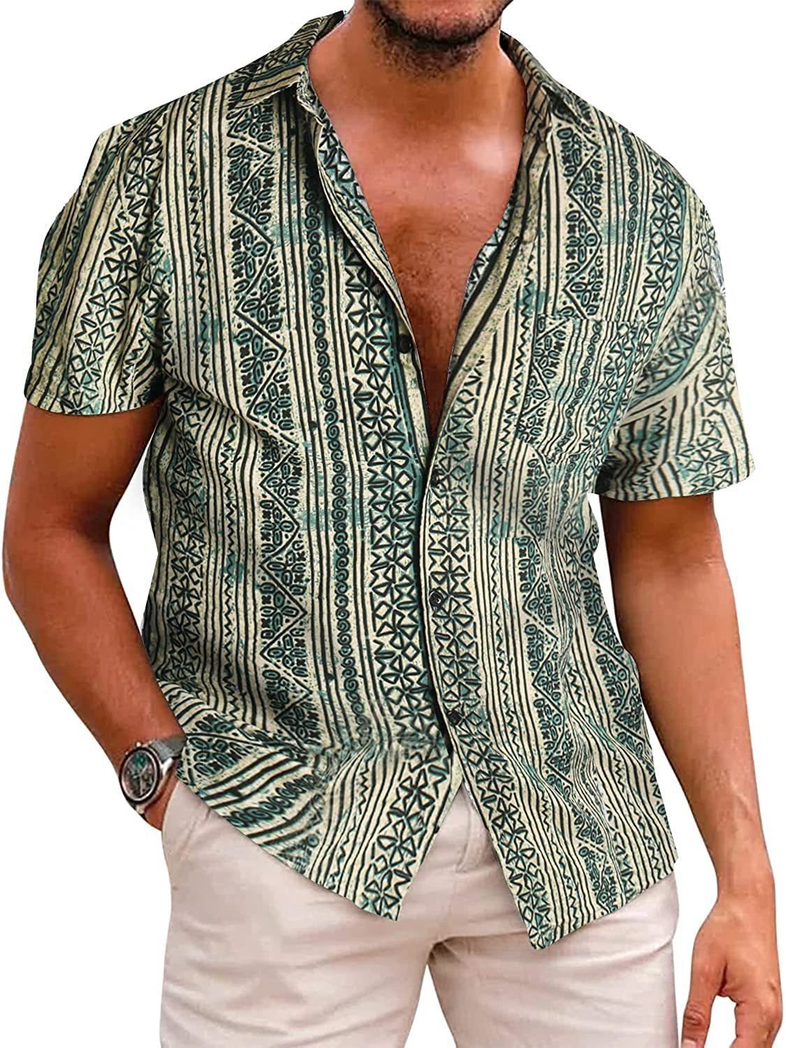 The Dark Green Stripe Patterns button-up shirt exudes sophistication and style. With its dark green hue and...
