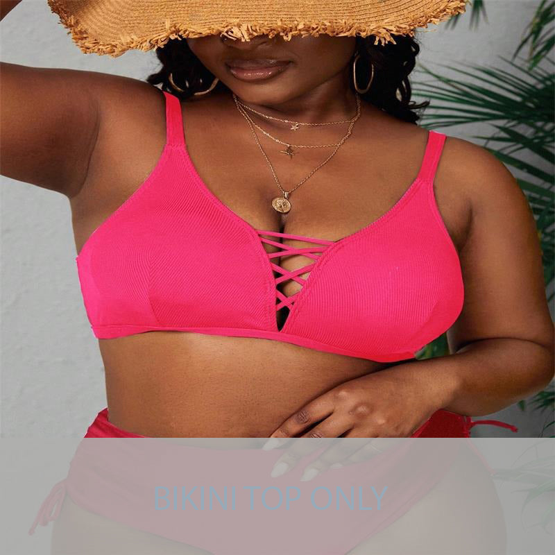 Elevate your poolside style with our Women Swimsuit Plus Size Crisscross Front Bikini Top This chic and stylish top is designed to flatter curves and provide comfortable support. The crisscross front detail adds a trendy touch. Crafted from high-quality fabric, this top ensures durability and long-lasting wear. Whether you're soaking up the sun or enjoying a dip in the pool, this pink swimsuit is sure to make you feel fabulous and fashionable.